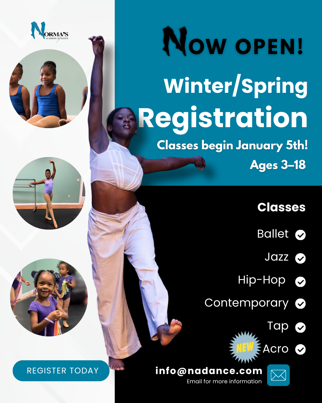Registration is open, and we are excited to welcome new dancers ages 3-18 to our NAOD family.