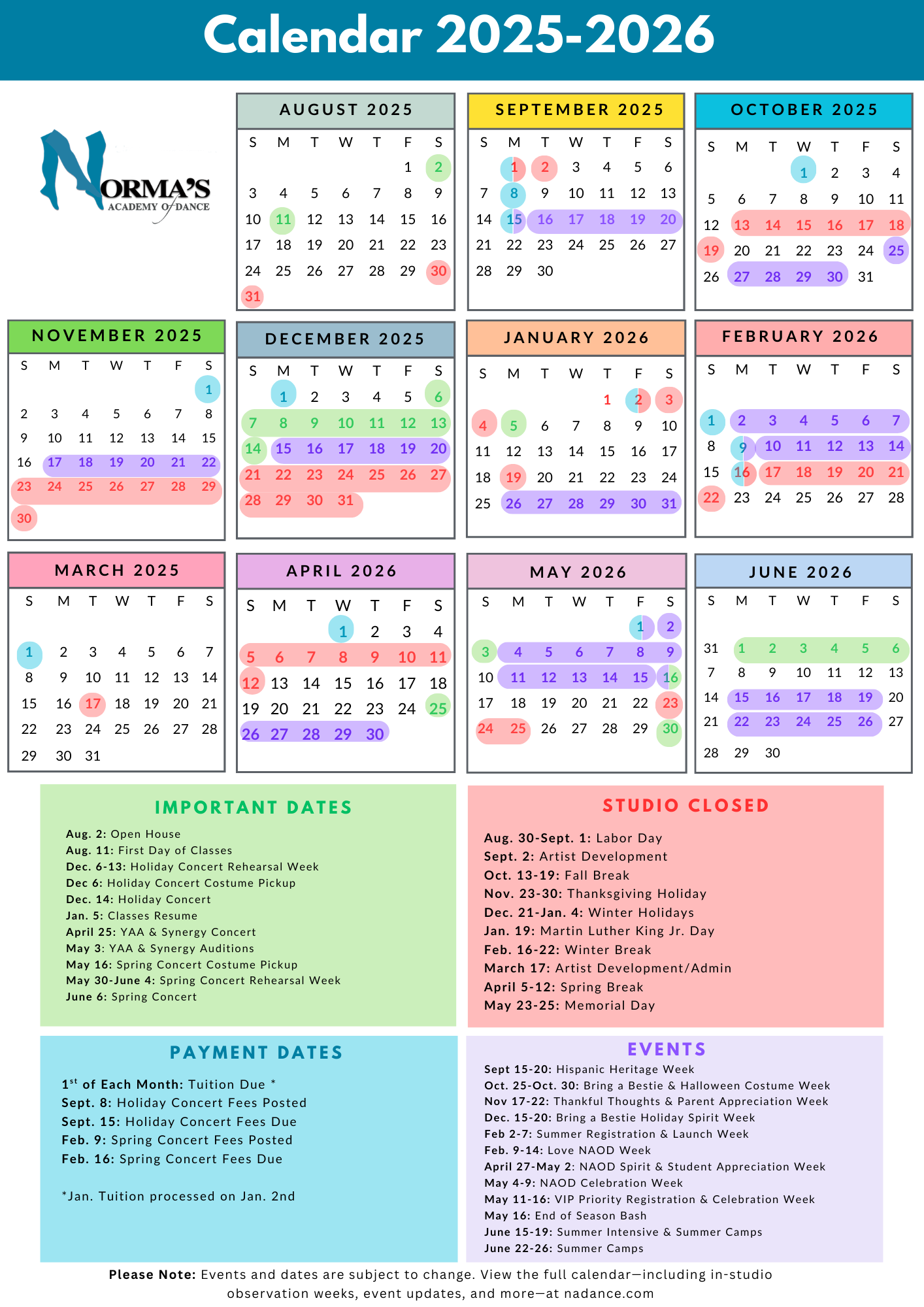 At NAOD, we believe that dance is more than just weekly classes—it’s also about building community, creating joy, and fostering lifelong friendships. From our annual concerts in December and June to our studio-wide events, there are several ways to engage with the NAOD community. Use this page as a guide to stay in the loop on all things NAOD!