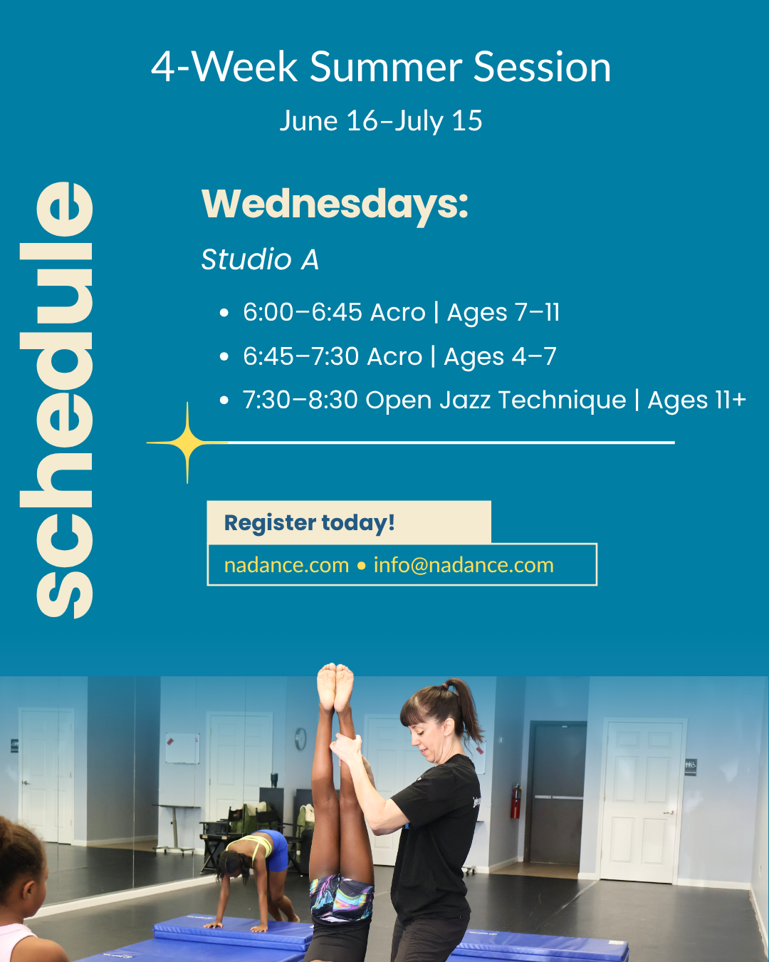 Looking for even more summer options? In addition to our evening class sessions, NAOD offers engaging themed camps for Ages 3-10 and our Elevate Summer Intensive for dancers who are ready for focused training.